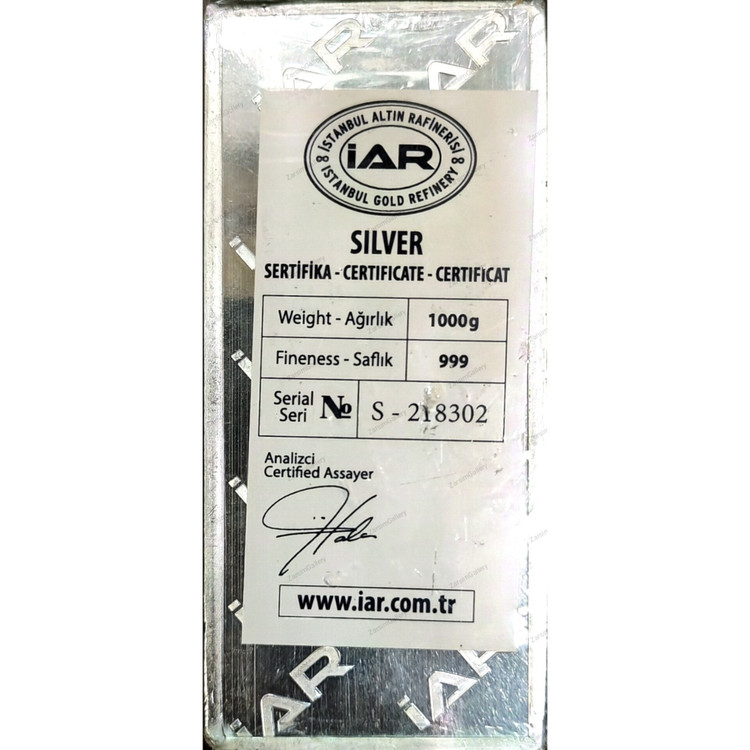 شمش نقره عیار (IAR) ترک وزن 1000 گرم عیار 999 (دو رو ضرب)
